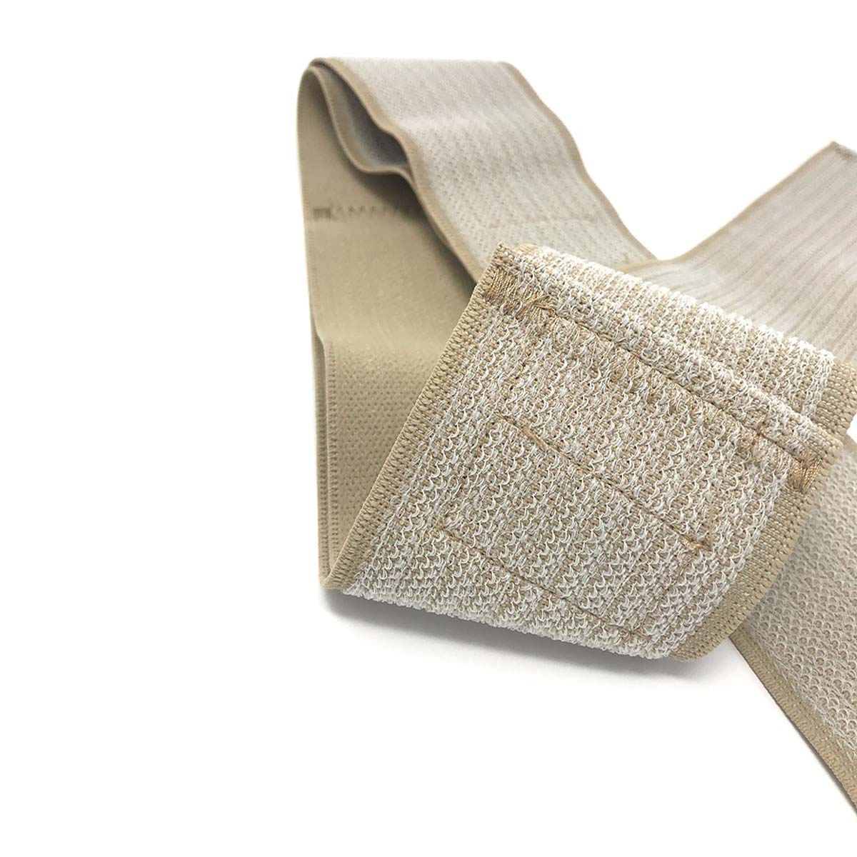 Soporte vientre, confeccionado en elástico libre de látex y ajustable con cierre de velcro.