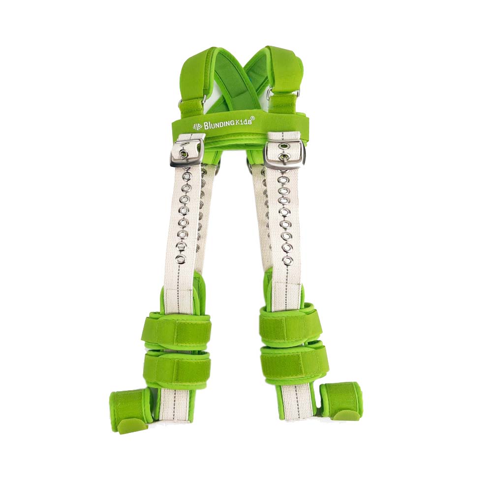 La correa tiene como objetivo posicionar la cadera en flexión, abducción y rotación externa, además, en la zona del pie cuenta con un estribo para dar mayor firmeza y evitar que el bebe se extraiga el arnés con patadas.