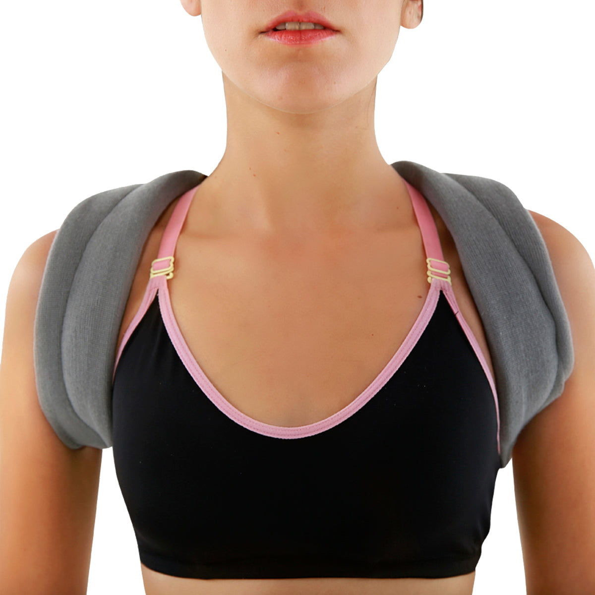 Soporte de clavícula confeccionado con refuerzo acolchado en su parte posterior y dos bandas de algodón regulables con cierre de velcro.