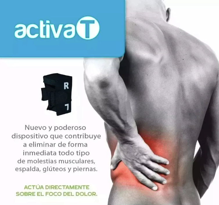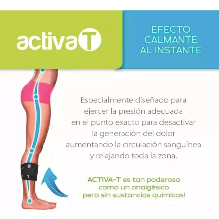 ¿Sufres dolores en la espalda, glúteos o piernas? ¡ACTIVA-T es la solución natural que necesitas! Este vendaje, basado en la acupresión, alivia el dolor de manera inmediata y sin medicamentos. Su diseño cómodo y discreto permite llevarlo debajo de la ropa, ideal para usar mientras trabajas o haces ejercicio.