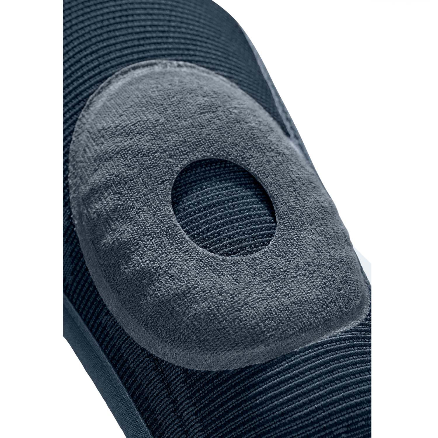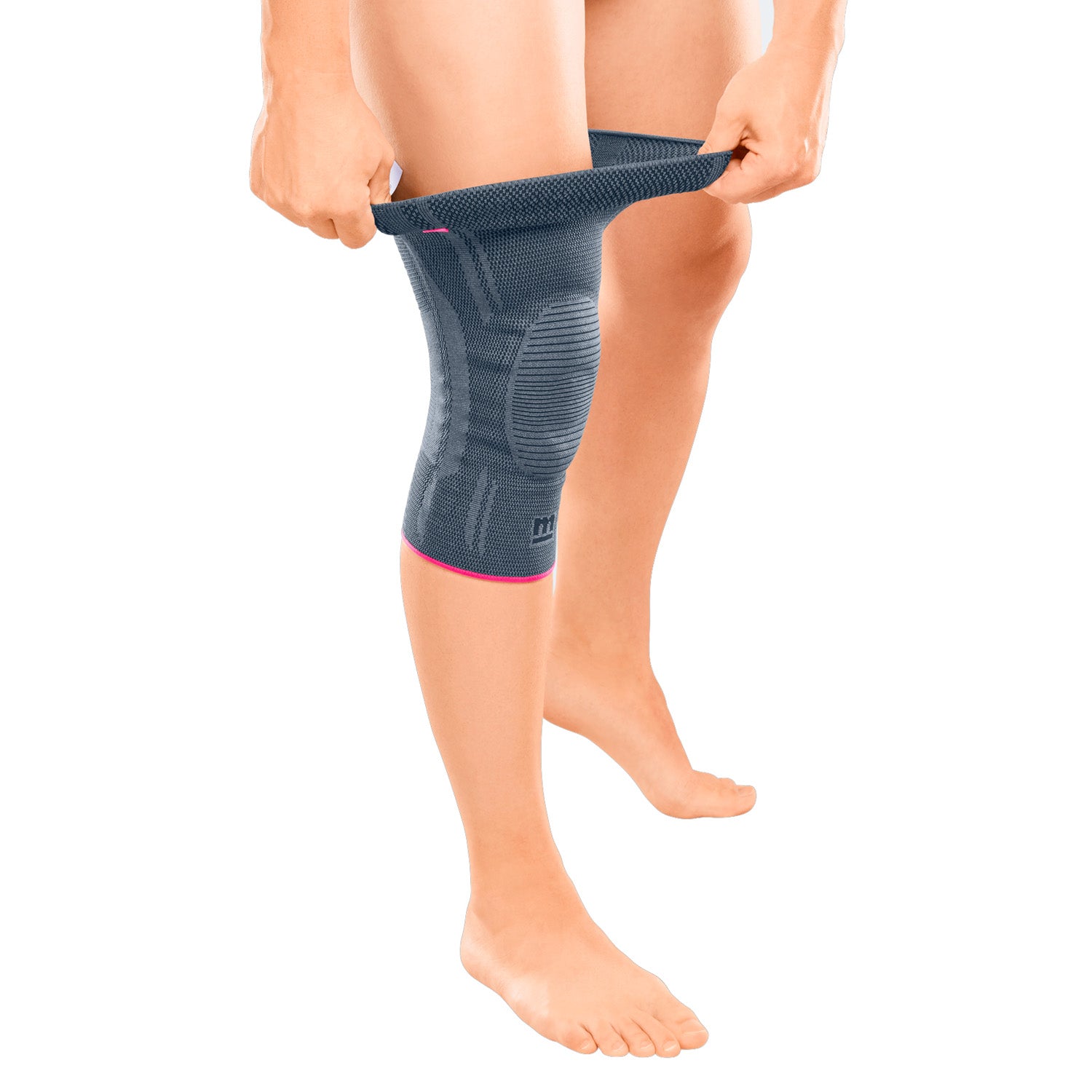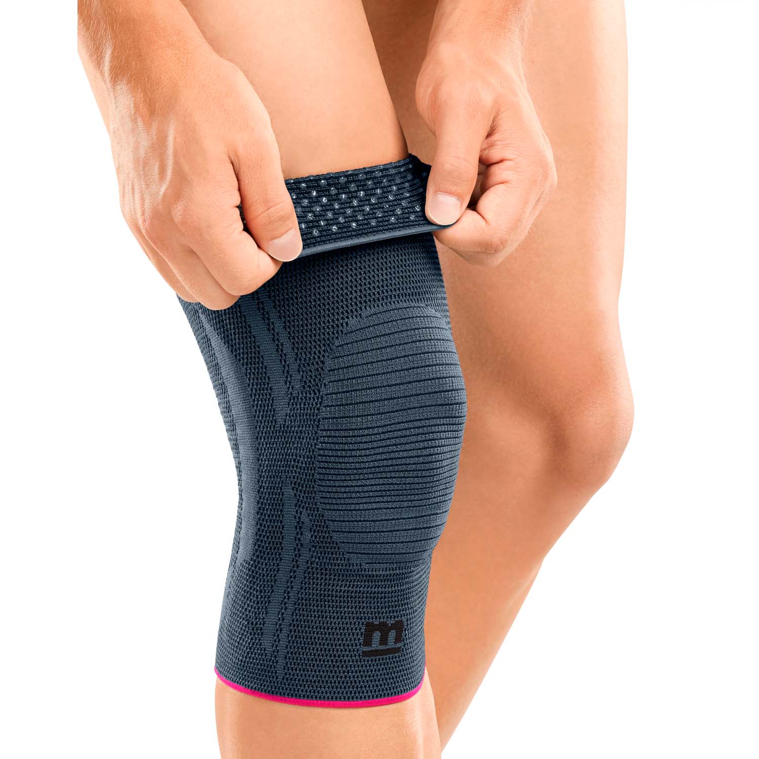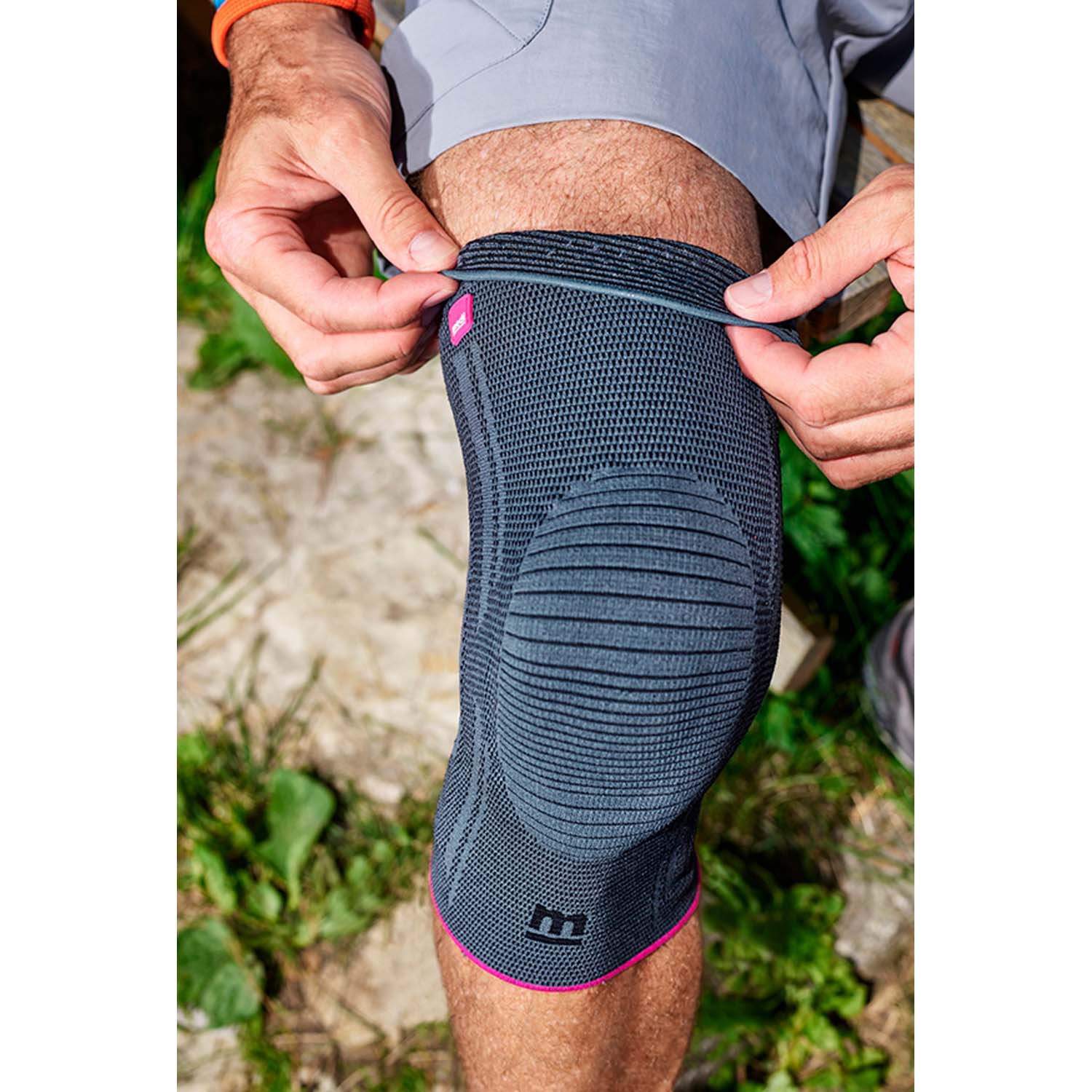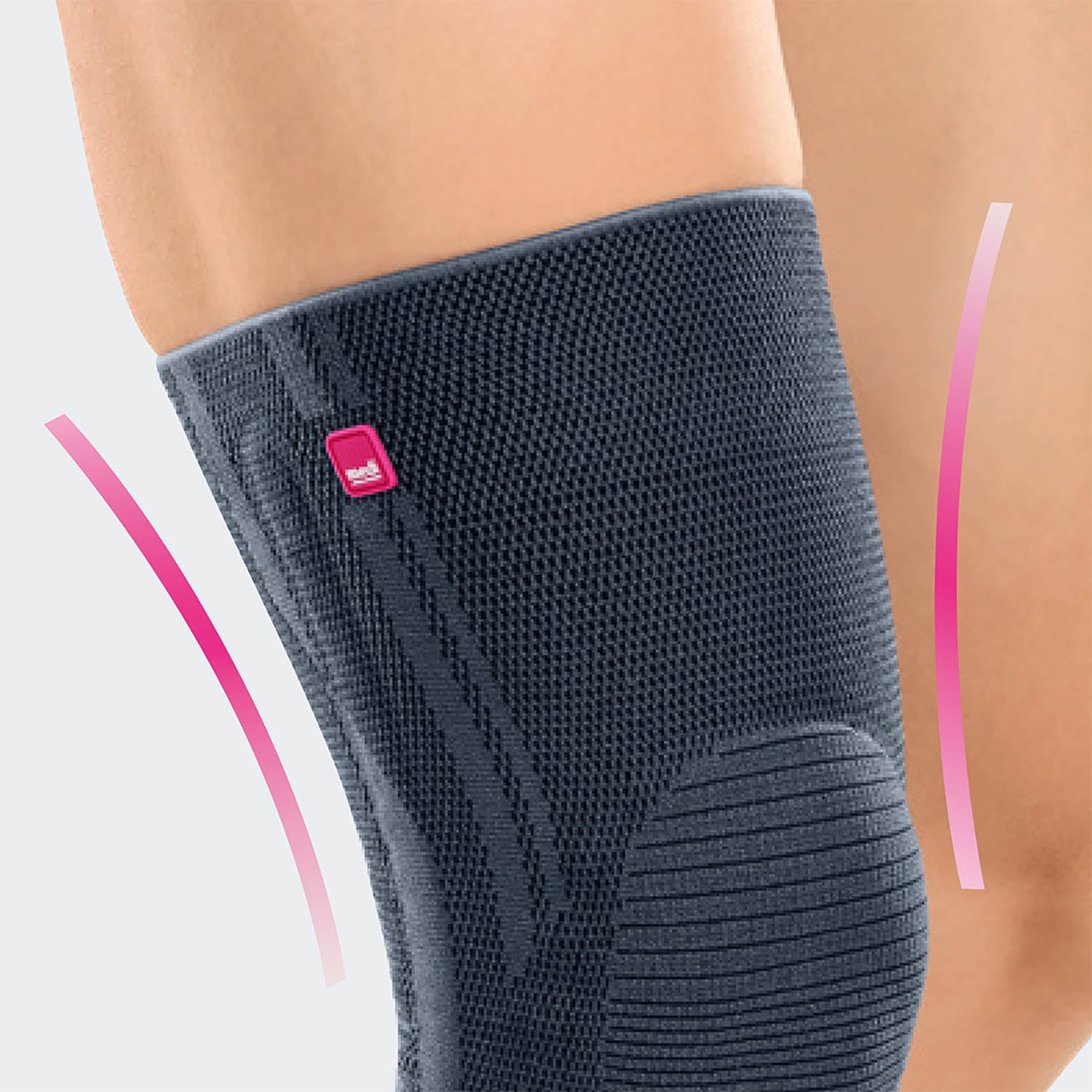 La rodillera tiene un diseño anatómico y sin costuras parar mejorar la propiocepción y consigue con ello una mejora del soporte muscular (estabilización de la rodilla).