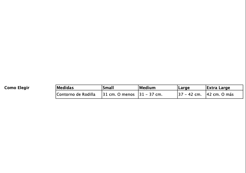 Extra Large (XL): Contorno de rodilla: 42 cm. o más.