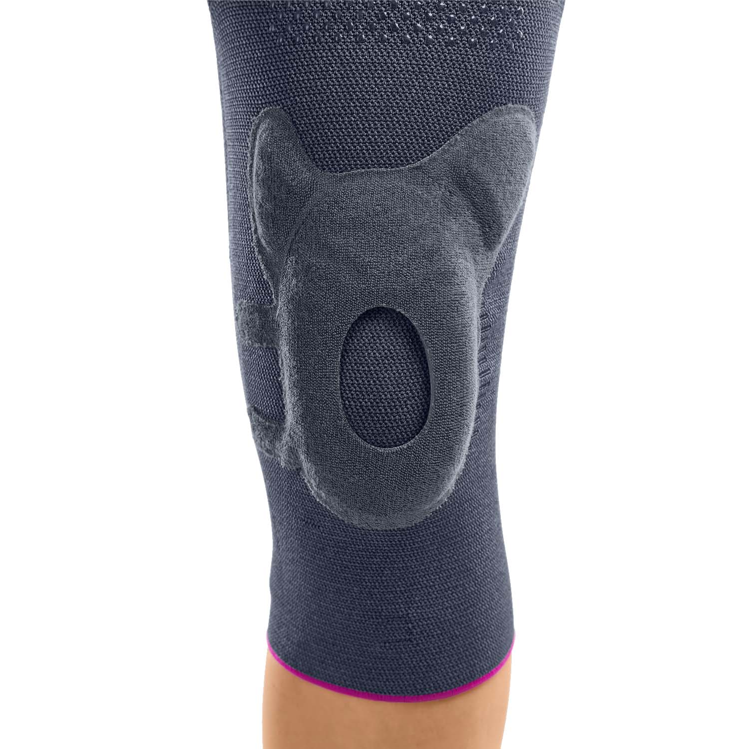Rodillera para influenciar la dirección de la rótula (patela) con una almohadilla de silicona, la cual promueve disminuir el dolor y reduce la inflamación. El diseño de esta almohadilla y su banda exterior permite ajustar la tensión que se ejerce a la rótula.